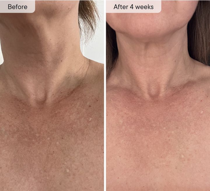 Visibly reduced fine lines, refined texture, brighter tone